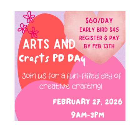 Join us for a wonderful day full of arts and crafts! We will be making a variety of creative creations throughout the day!